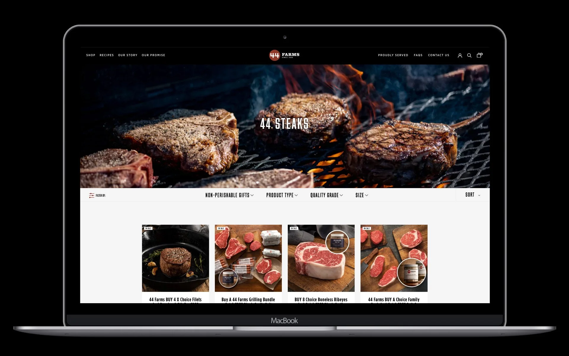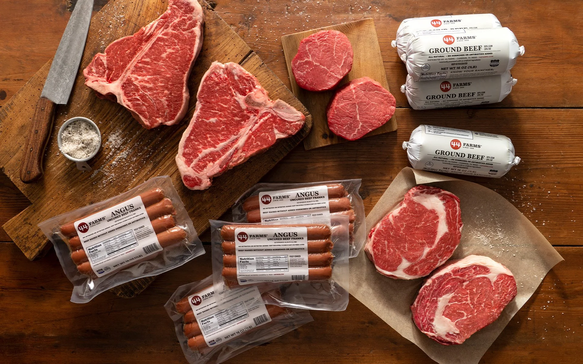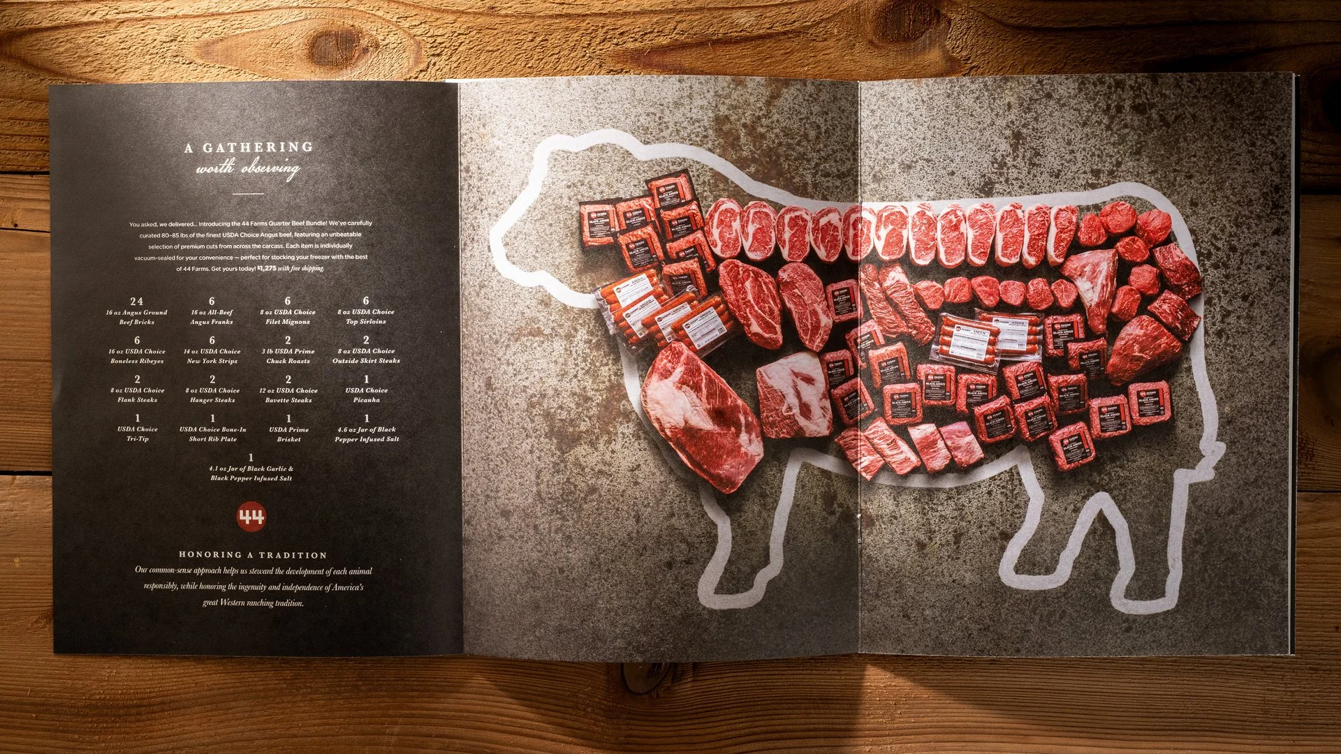 Renowned for its fine marbling and superior tenderness, 44 Farms beef deserves to be showcased with equally exceptional photography. So we partnered with photographer Josh Blaylock to build an extensive library of product images for 44 Farms. Photographed against natural surfaces with sharp, dramatic lighting, the images provide a strong foundation for branding initiatives.